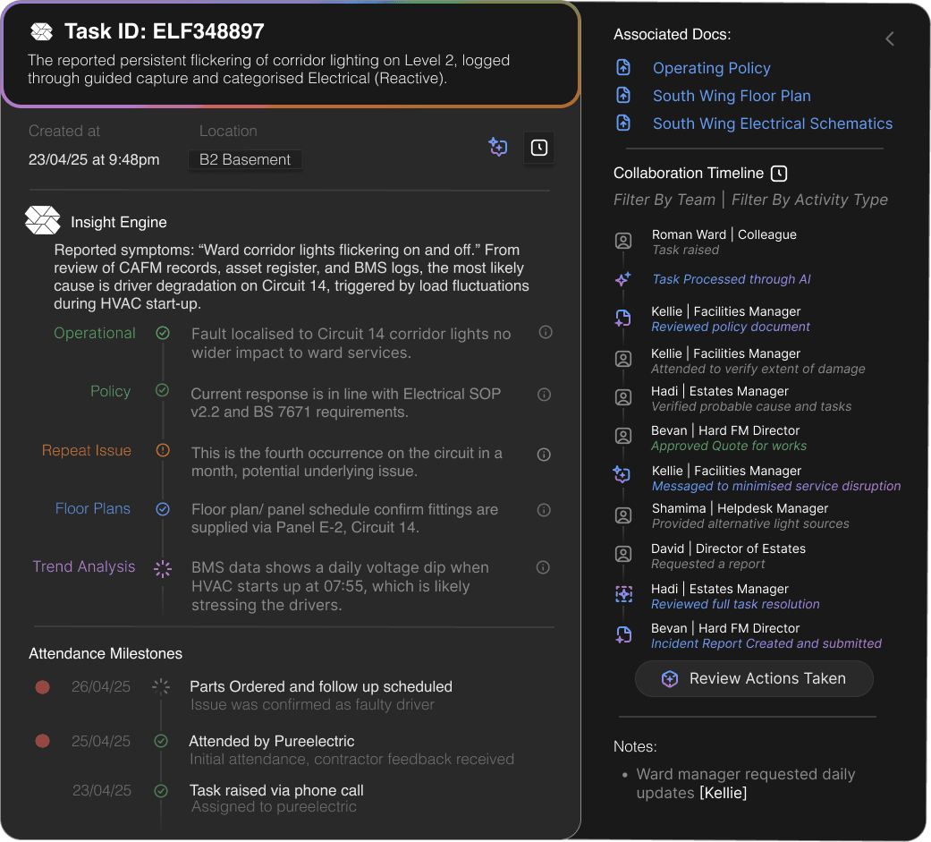 Faster, AI-empowered, fully auditable decisions,inside the tools estates and facilities teams already use.
